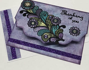 I do have two more cards that I finished though and they are in the Etsy shop now. This one says, “Keeping you in my heart” on the inside so it could be used for either a get well or a sympathy card.