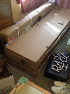 By far the biggest thing I have had to unpack is my ScrapBox Workbox. I was so excited to get it and when it was delivered it was on a pallet which they left in our driveway. We had to wait until our daughter went away to college for the room to be empty enough for us to assemble it so for a few days all the boxes were in the living room!