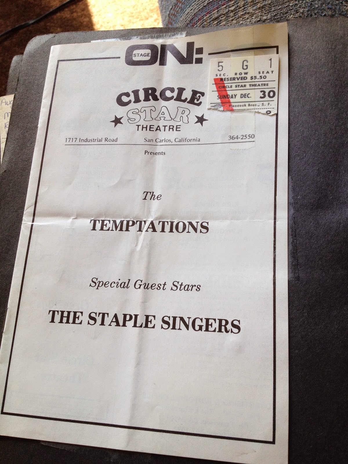 Turns out that I saw the Temptations for the first time at the Circle Star Theater in 1973! That was a really interesting venue because the stage was a circle and it rotated during the performance. I have no pictures from that time but I do have the program in my very old scrapbook.