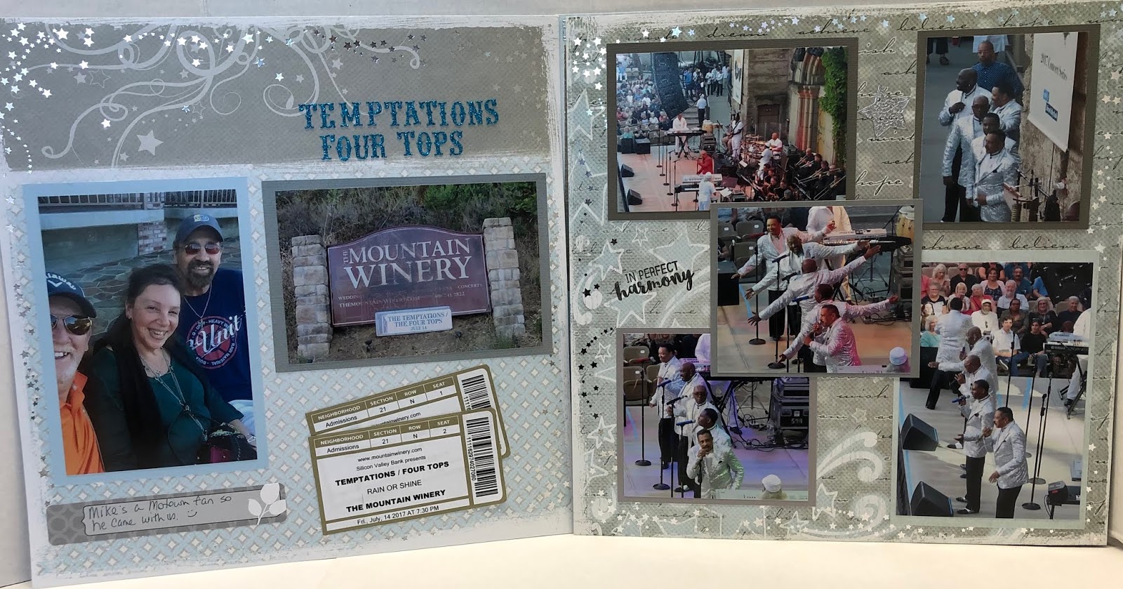 This time we saw them at the Mountain Winery – can you tell that is one of our favorite venues? I decided to use this paper from Creative Memories that I’ve had in my stash for quite a while.