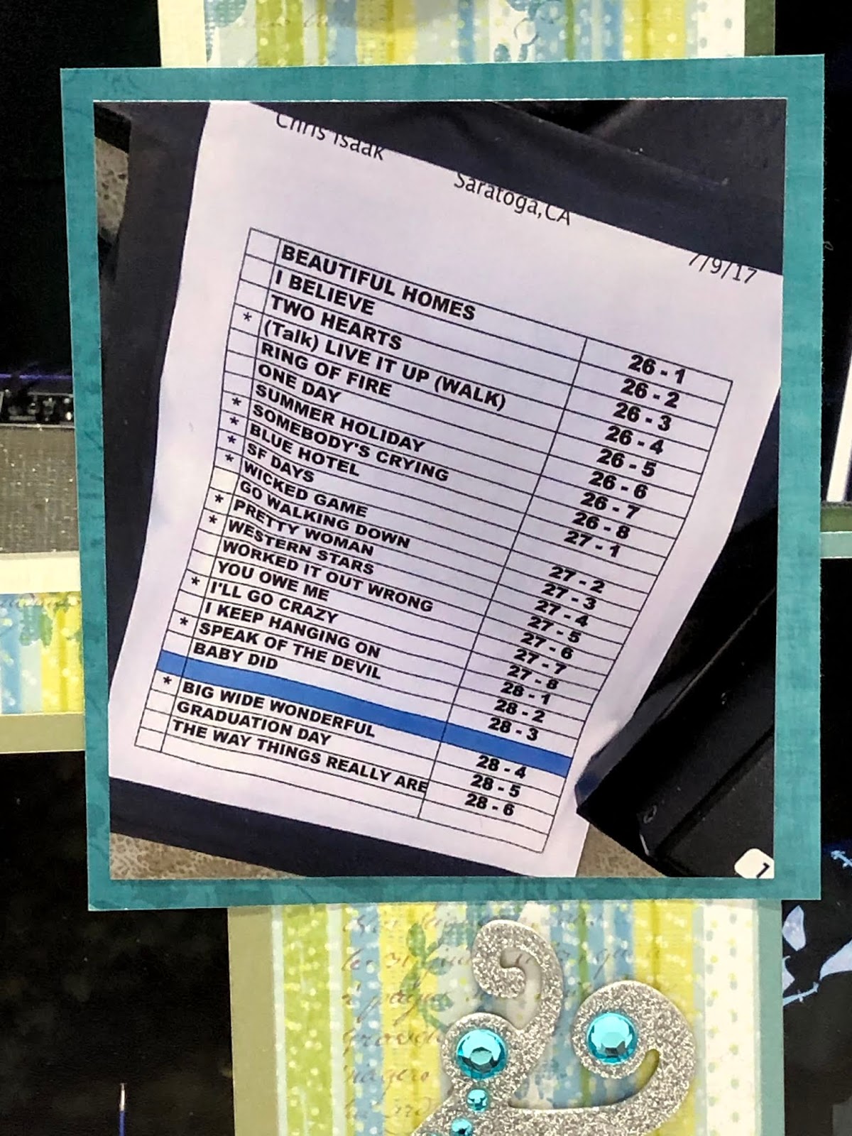 We were sitting close enough that my husband was able to sneak up to the stage and take a picture of the setlist!
