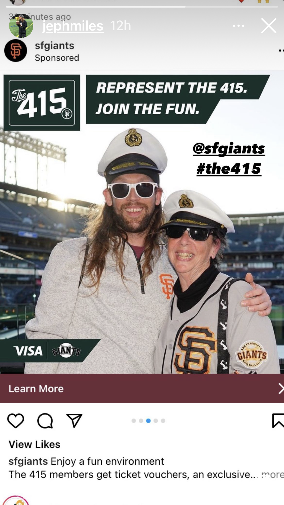 The San Francisco Giants are using a photo taken of my son and I at one of the games we saw from the #415 section, a new area they made last year that comes with some special perks and giveaways. The hat was the freebie at that game in tribute to Brandon Belt. How exciting is that? My hubby is disappointed because he was supposed to go to that game with me and at the last minute changed his mind. I like to spend time with the kids on a one-on-one sometimes and this was a fun night.