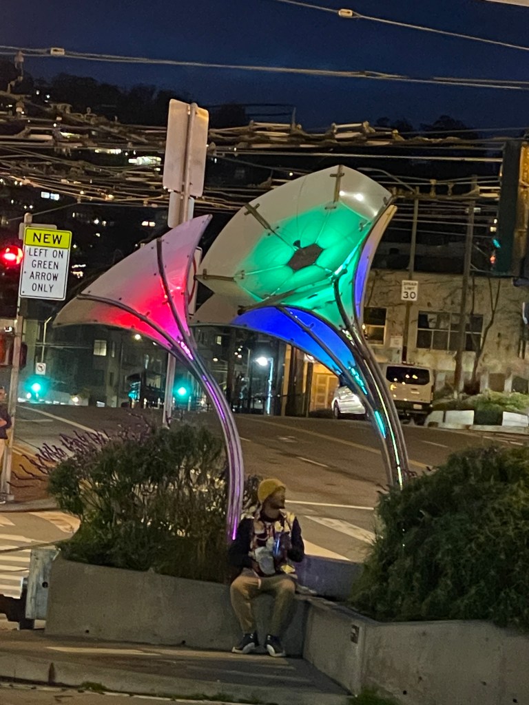 I got a picture of The Seed in 2021 when I went through the Castro for that year’s A to Z but it was in the daytime. While that looks nice, it is a bit more interesting after dark.
