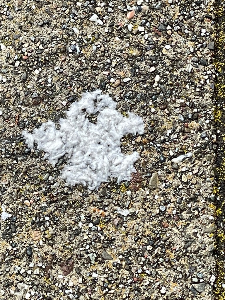 Was walking our dog, Benny, the other day and saw this on the sidewalk. I’m not sure what it really is, maybe some paper that got wet, but to me it was a friendly ghost.