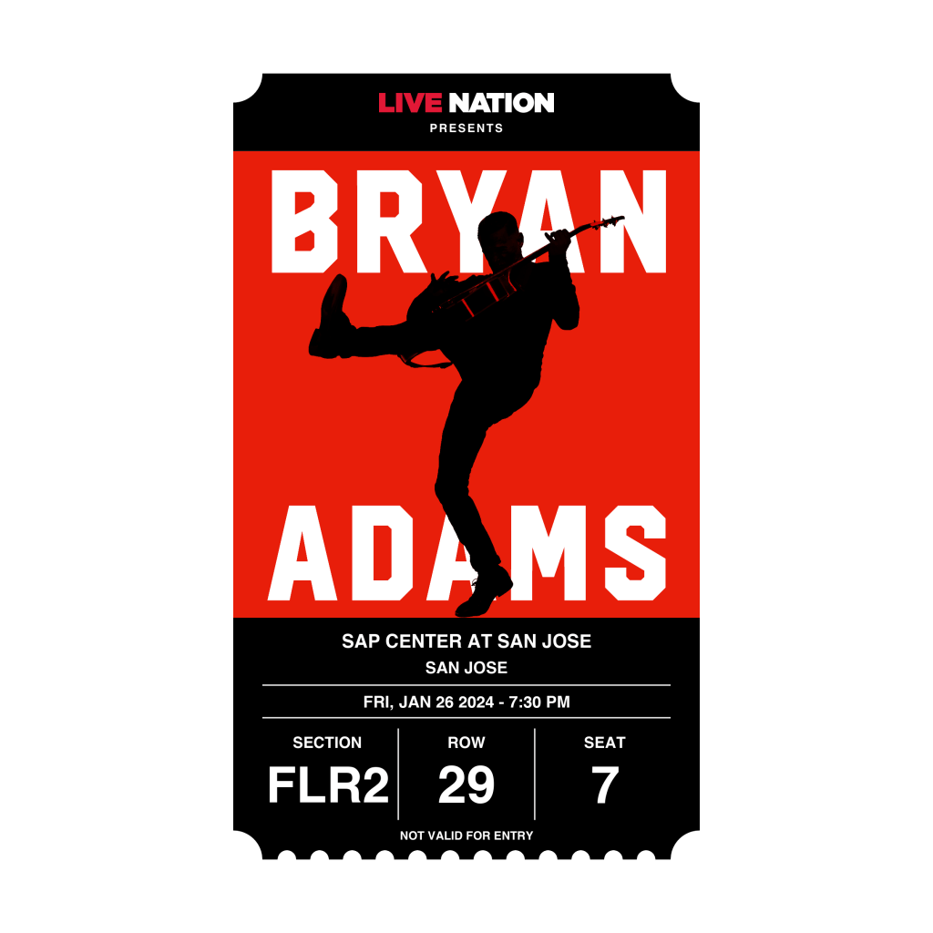 Okay, enough chatter. Up first is Bryan Adams. He has always been a favorite of mine but we hadn’t seen him live before so I was excited when I saw he was coming to the SAP Center. We got tickets on the floor and I thought they were pretty good but about a week before the show I happened to see that there were a bunch of tickets closer for the same price. I contacted Ticketmaster because for some shows if you find better seats closer you can make an exchange. This is where we ended up.