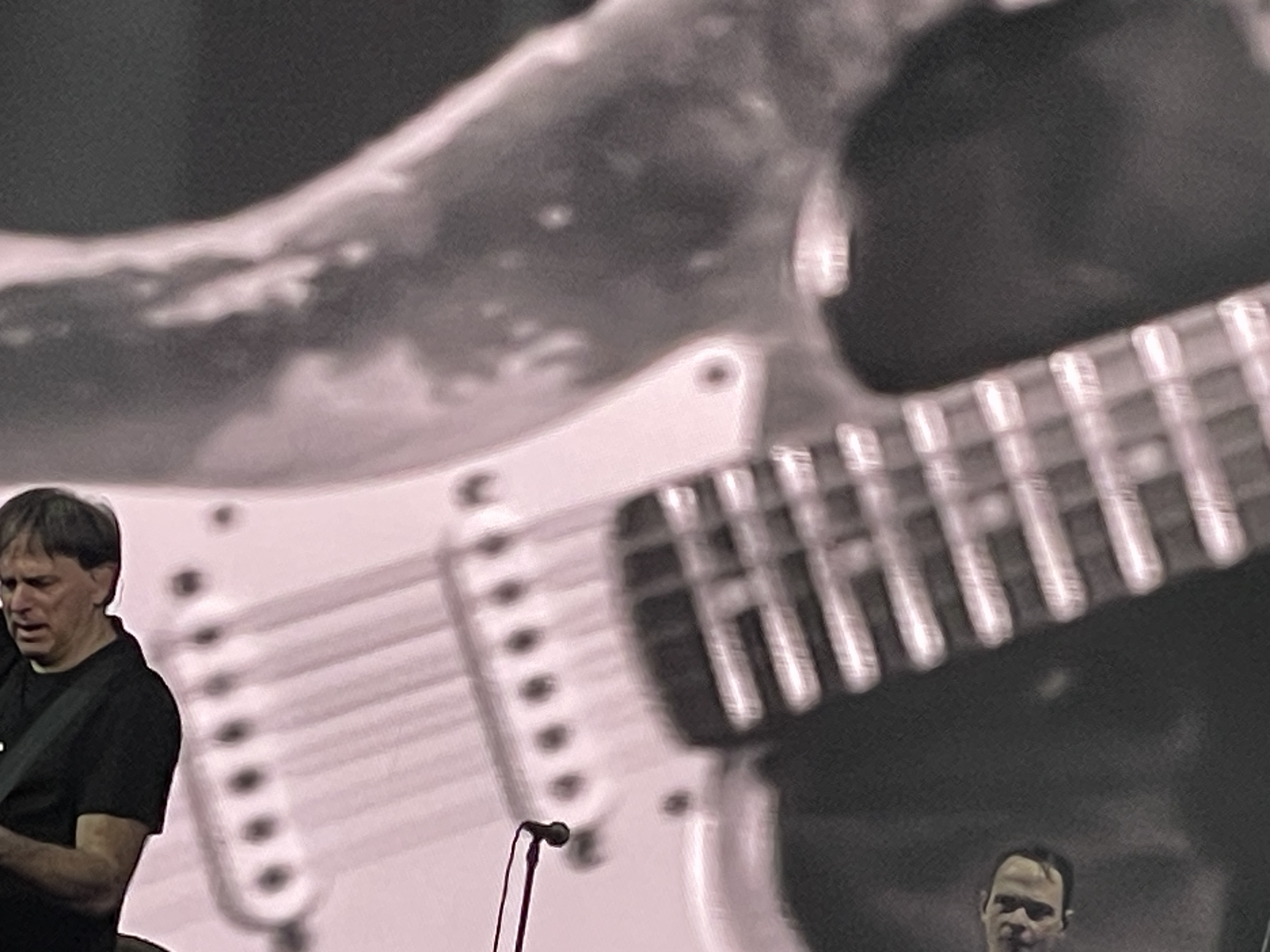 While waiting for the show to start we try to take a selfie. It is all for the scrapbook, you know? This was the “So Happy It Hurts” tour. All of a sudden a car started floating across the auditorium. There were no strings attached and at first I couldn’t figure out how they were making it float. Then off in the corner I could see a guy with a remote control. You can see him if you look quickly at the beginning of the video right before I zoom in.