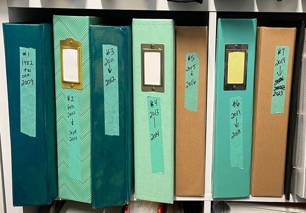 Because this is such a short one I thought I’d throw in an eXtra, a look at the scrapbook albums I’m in the process of making. You can see that they are still a work in progress. Only the first two are complete. The rest have missing shows as I work my way through the process of scrapbooking them all.